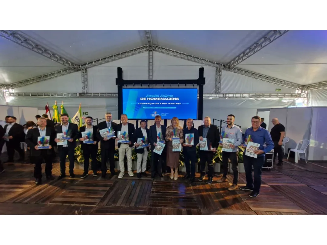 O Legislativo Municipal de Tapejara realizou, neste sábado, 25, uma Sessão Solene dedicada ao reconhecimento da liderança dos ex-presidentes da Expo Tapejara. O evento, realizado no Espaço Gestão da Arena Digital Sicredi, celebrou a trajetória de quem esteve à frente de cada edição da feira, estende