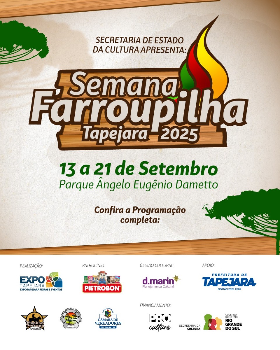 A Semana Farroupilha de Tapejara 2025 vai muito além das tradições campeiras e das manifestações culturais. Entre os dias 13 e 21 de setembro, o sabor da cultura gaúcha será celebrado com uma programação gastronômica especial, repleta de pratos típicos, ingredientes locais e refeições preparadas por