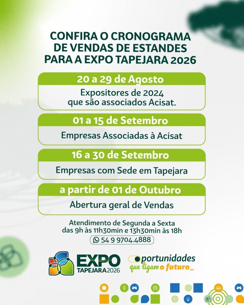 Em entrevista à Rádio Tapejara (20/08), o presidente da Expo Tapejara Feiras e Eventos, Daniel Graminha Vieira, anunciou que o período de reserva de espaços para os acampamentos no Parque Municipal está aberto até o dia 29 de agosto.