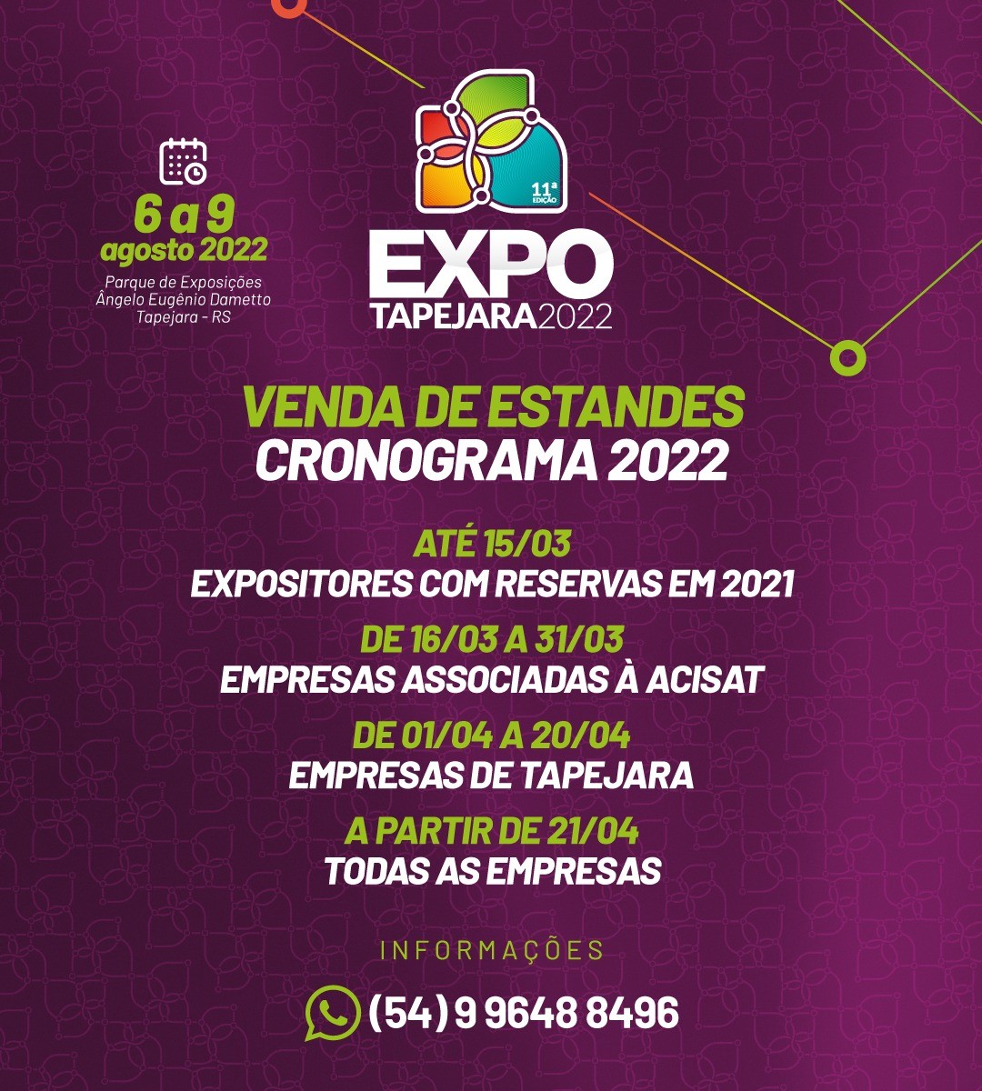 Empresários tapejarenses tem até 20 de abril para garantir seu estande na Expo Tapejara 2022.