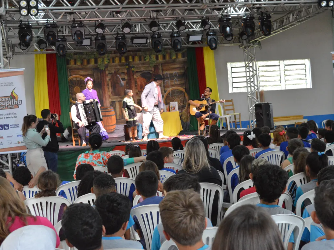 Como parte da programação da Semana Farroupilha 2025, o espetáculo “Histórias do Vô Venâncio” foi apresentado às escolas da rede municipal de ensino de Tapejara, na sexta-feira (19), à tarde, no Parque Ângelo Eugênio Dametto. O show proporcionou cultura, humor e tradição para crianças e educadores.