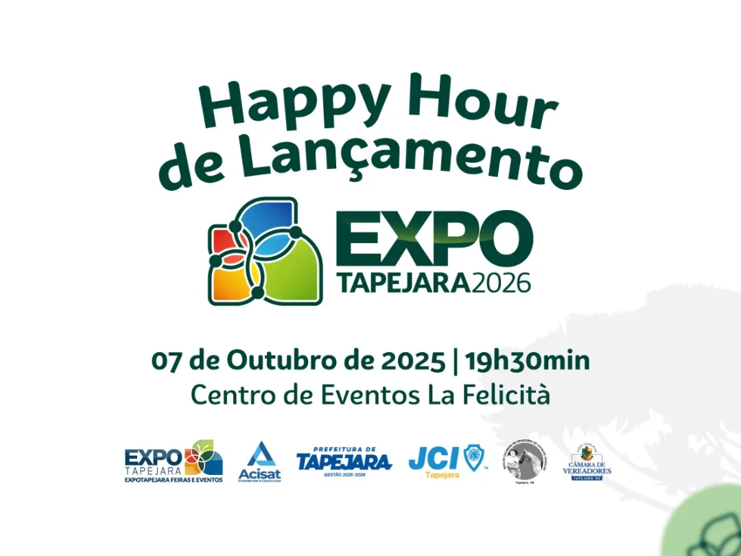 Marcado para esta terça-feira (07), no La Felicità Eventos, o lançamento da Expo Tapejara promete anúncios de grandes atrações e novidades na programação da feira que vai acontecer de 22 a 26 de abril de 2026 no Parque Municipal Ângelo Eugênio Dametto.